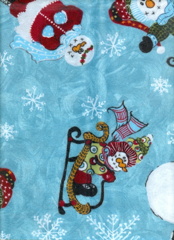 Riverwoods - Blizzard Bunch Babies Flannel - Large Snowmen & Snowflakes, Lt Blue