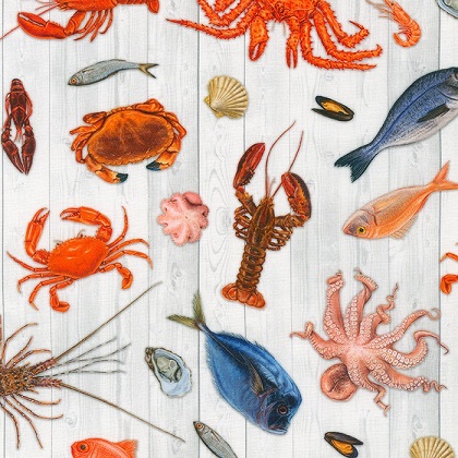 Robert Kaufman - Catch of The Day - Fish Motifs, White