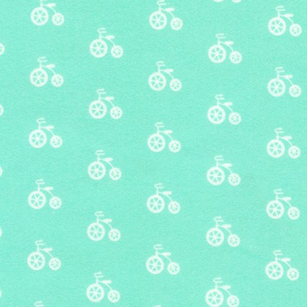Robert Kaufman - Cozy Cotton Flannel - White Tricycles, Seafoam