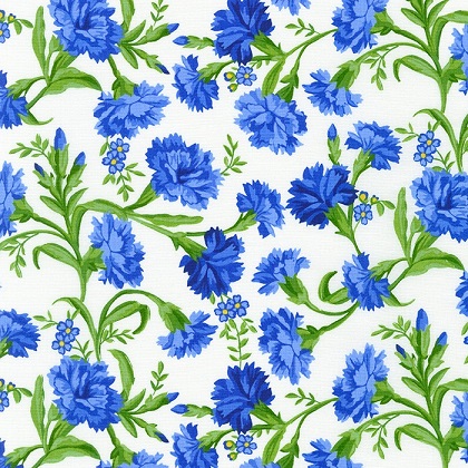 Robert Kaufman - Flowerhouse: Jubilee - Blue Flowers, White