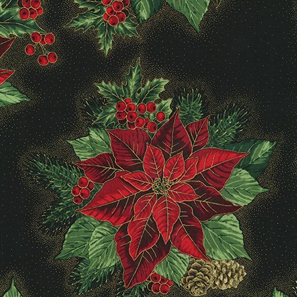 Robert Kaufman - Holiday Flourish 13 - Poinsettia, Black