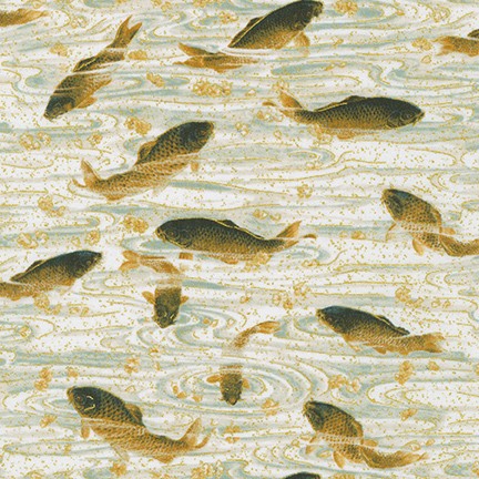 This lovely Asian-inspired collection, Designed by Studio RK, in shades of ivory, charcoal, dusty blue, and antique is accented with gold metallic. Large floral bouquets, Koi fish, Bamboo fronds, and blossoms are perfect to use to make a beautiful Asian quilt or wall hanging. Have fun creating a purse, tote bag, etc. to share with a friend!