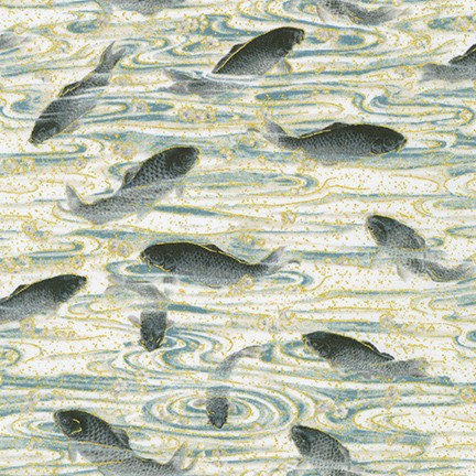 This lovely Asian-inspired collection, Designed by Studio RK, in shades of ivory, charcoal, dusty blue, and antique is accented with gold metallic. Large floral bouquets, Koi fish, Bamboo fronds, and blossoms are perfect to use to make a beautiful Asian quilt or wall hanging. Have fun creating a purse, tote bag, etc. to share with a friend!