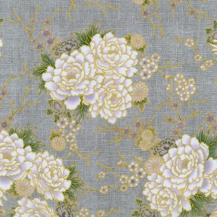 This lovely Asian-inspired collection, Designed by Studio RK, in shades of ivory, charcoal, dusty blue, and antique is accented with gold metallic. Large floral bouquets, Koi fish, Bamboo fronds, and blossoms are perfect to use to make a beautiful Asian quilt or wall hanging. Have fun creating a purse, tote bag, etc. to share with a friend!