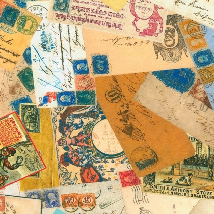 Open your mind and travel with this adventurous collection by Aimee Stewart called Library of Rarities. This fabric has antique letters and postcards tossed about and packed together.