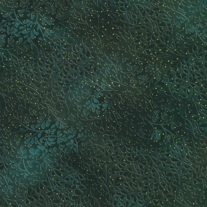 Robert Kaufman - Mixed Metallics - Leaves w/Gold Metallic Dots, Onyx