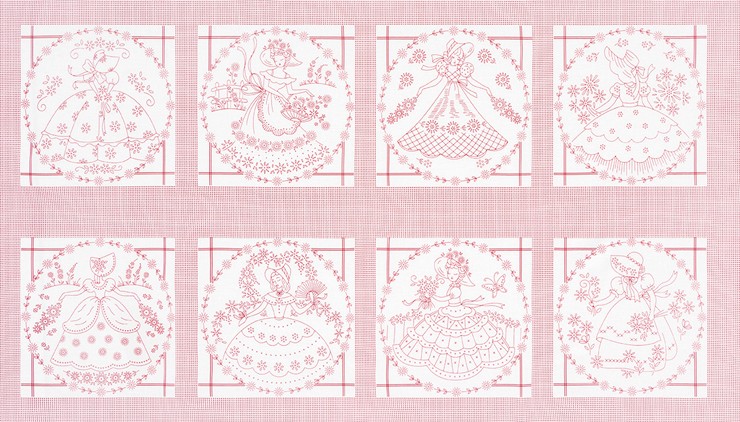 This 1930's Reproduction Southern Belle Fabric is just waiting for you to embroidery it or use as red work and make beautiful designs for your home or for a friend! Designed by Darlene Zimmerman