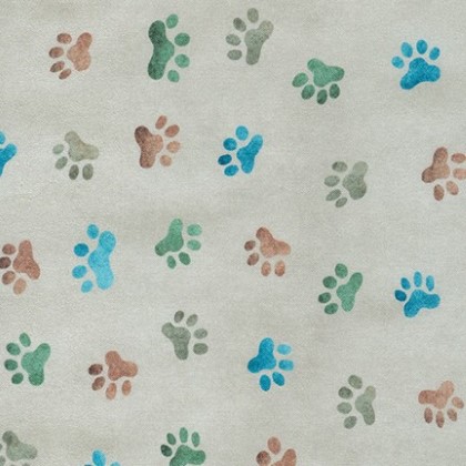 Robert Kaufman - Whiskers & Tails - Paw Prints, Cocoa