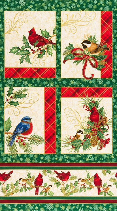 Robert Kaufman - Winter's Grandeur 8 - 24" Bird Panel, Cream