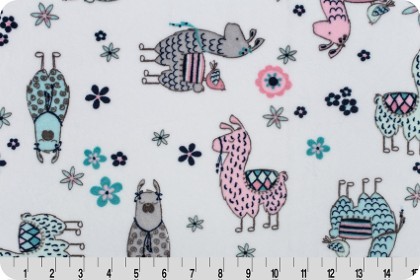 Llamas have become somewhat of a cultural phenomenon over the past few years or so, and we're 100 percent onboard with this endearing trend! You can't help but smile when you see our llama-themed minky plush fabric featuring a handful of different furry characters evenly spaced amongst cute little flowers. Our No-Prob-Llama Digital Cuddle® is great for both kids and adults, and when sewn as a self-binding throw blanket, you'll feel like you're cuddling with a llama right on the couch!