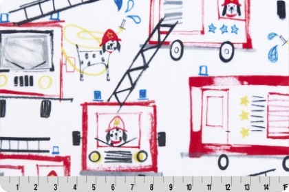 Shannon Fabrics - Cuddle Prints - Pups on Trucks, Scarlet
