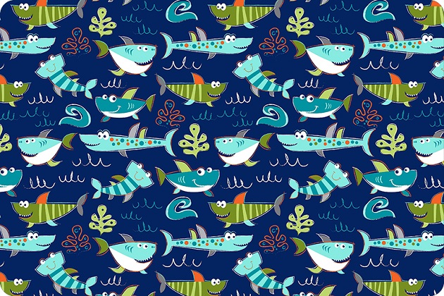 Shannon Fabrics - Cuddle Prints - Sharkies, Sea