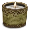American Soybean Wax burns pure, with beauty and aroma, plus, it burns longer than paraffin AND is made from a naturally renewable source. Comes in a reusable brown vintage round stoneware pot! NOTE: This candle comes in a brown pot. The green color is pictured here.