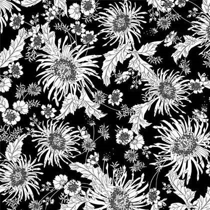 Studio E - 108" Bloom - Floral Two Tone, White on Black