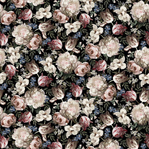 The life-like flower patterns in Art of Midnight are reminiscent of old Dutch still-life floral paintings with their black background and warm white flowers. Choose from an assortment of masterpiece prints to let your inner artist turn it in to a quilt creation. The lush color palette of midnight, dark sage, warm white and taupe is a great addition to any home décor. Be sure to take a look at the Midnight Floral 108” as well to back any quilts made with this collection. Let your creativity bloom with the Art of Midnight group.