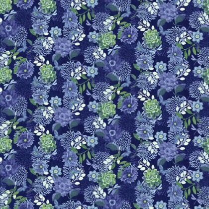 Studio E - Bella Blue Birds - Large Floral, Indigo