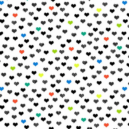 /Shopping/Fabric/Fabric (Shop By Manufacturer)/Studio E/Black & White with Touch of Bright/Studio E - Black & White w/Touch of Bright - Small Hearts, Multi/White