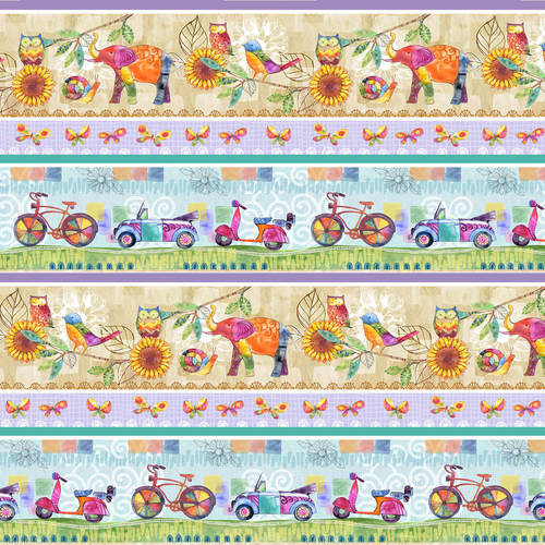 Another whimsical collection by JVP Creations. Campers, bikes, scooters, animals and birds are done in vibrant color. Use for quilts and home décor. Brighten you day with a cute purse or tote!