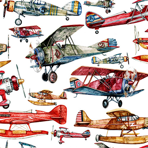 Michael Moon’s latest collection for 3 Wishes fabric brilliantly portrays vintage aircrafts and the thrill of aviation. In this 7-piece digitally printed collection, the lead design portrays an array of early airplanes. The primary color palette reimagined with a weathered texture lends to the retro feel of the collection. Other designs include 2 airplane blueprints in different colorways, vintage apparel and pilot gear, an allover compass and map print, an checkered flag, and a realistic control panel design.
