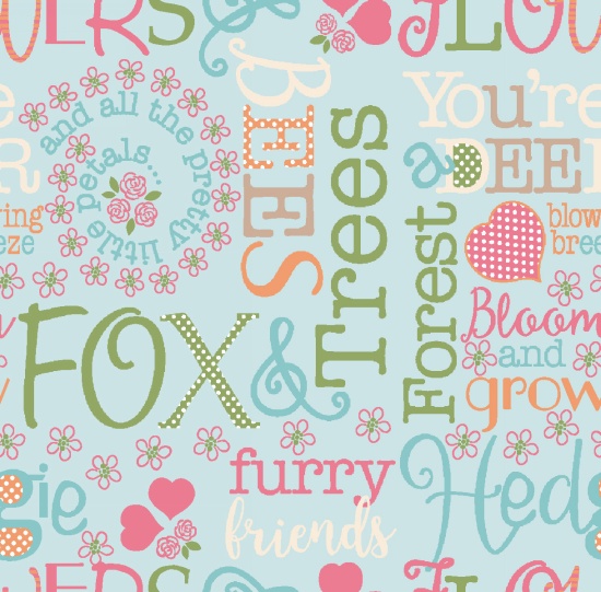 Sweet little woodland friends featuring deer, bunnies , foxes and more! All done in mid-tone pinks, blues and greens. Make a cute quilt for your little girl. Perfect for crib quilts or curtains for the nursery.