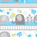 Studio E - Hello Baby Flannel - Large Elephant Stripe, Blue
