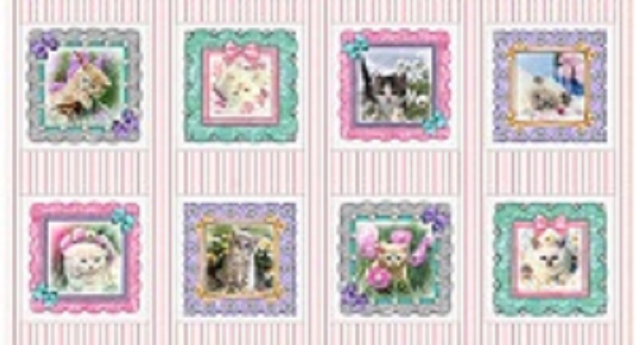Studio E - Kitty Glitter - 24" Panel of 8, 9"x9" blocks, Pink/Multi