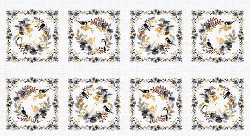 Watercolor Sketchbook was designed by Grace Popp. Misty watercolor woodland scenes with birds ,wreaths and trendy marbles and stone prints. Soft charcoal, grays and black with gold accents give this collection a sophisticated appeal. Use for home décor, quilts and purses.