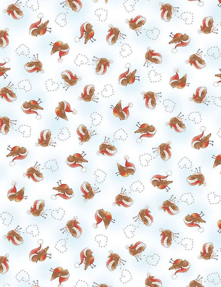 Timeless Treasures - Bunnies Snow Day - Tossed Birds in Santa Hats, White