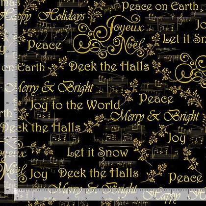 Timeless Treasures - Deck The Halls - Christmas Words & Music Notes, Black