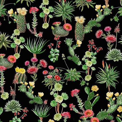 Timeless Treasures - Desert Dreams - Desert Blooming Cactus, Black