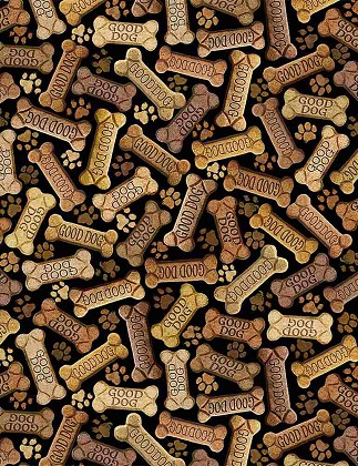 Timeless Treasures - Dogs - Tossed Dog Bones, Black