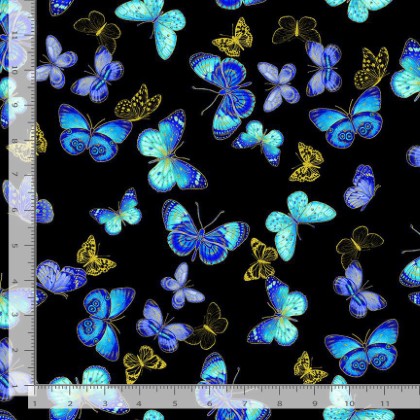 Timeless Treasures - Escapade - Flying Butterflies, Black