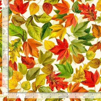Timeless Treasures - Fall is in The Air - Metallic Fall Leaves, Cream