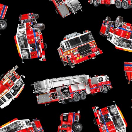 Timeless Treasures - Fire - Tossed Fire Trucks, Black