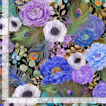 Timeless Treasures - Flourish - Peacock Feathers & Florals, Multi