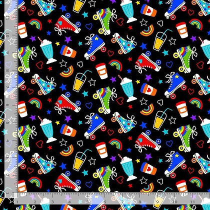 Timeless Treasures - Fun - Roller Skate Fun, Black