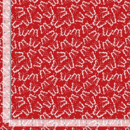 Timeless Treasures - Garden Redwork - Packed Butterflies, Red