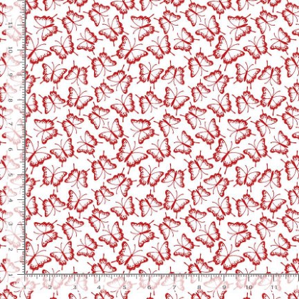 Timeless Treasures - Garden Redwork - Packed Butterflies, White
