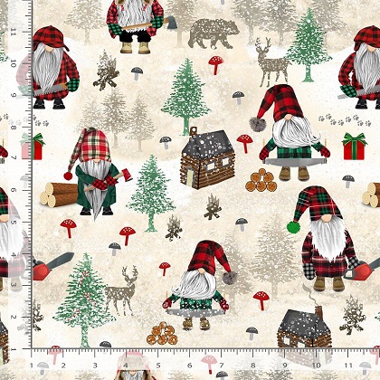 Timeless Treasures - Gnome For The Holidays - Lumberjack Gnomes, Cream