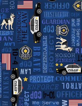 Timeless Treasures - Heros - (Police) - Words, Blue