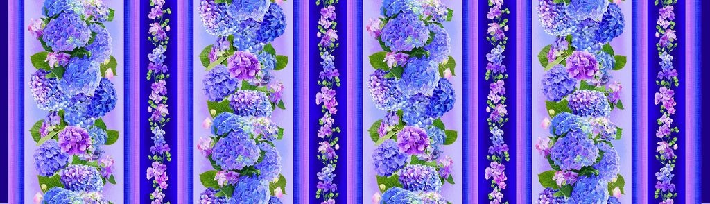 Hydrangea Bliss by Chong-a Hwang for Timeless Treasures is a beautiful fabric collection that highlights the beauty of hydrangeas. This collection features butterflies, swirls, and of course, hydrangeas, in rich tones of violet and blue. Perfect for quilts, home décor and apparel.