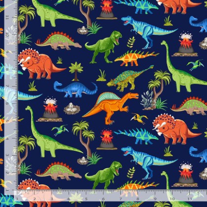 Timeless Treasures - Kidz - Dinosaurs Scenic, Navy
