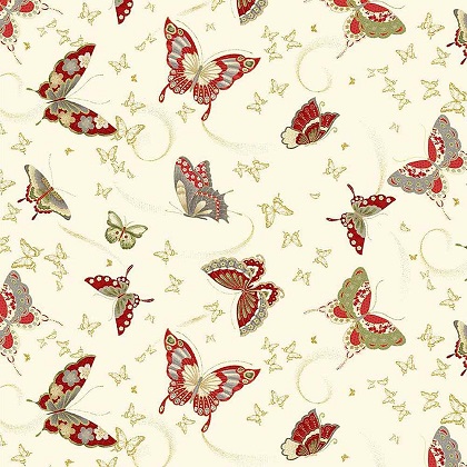 Timeless Treasures - Kyoto Garden - Asian Butterflies, Cream