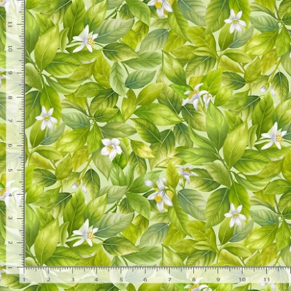Timeless Treasures - Lemon Bouquet - Packed Lemon Leaves, Green