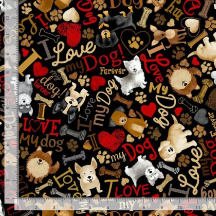 Timeless Treasures - Minky Print - (Softie) - Tossed Dogs & Words, Black