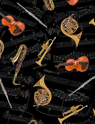 Timeless Treasures - Music - Orchestra Instruments w/Music Background, Black