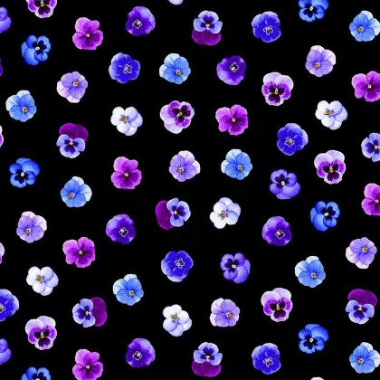 Timeless Treasures - Pansy Perfection - Tossed Pansy Floral, Black
