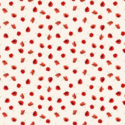 Timeless Treasures - Poppy Passion - Tossed Poppies, Cream