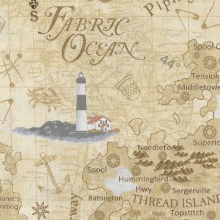 Timeless Treasures - Row x Row '17 - Map, Natural