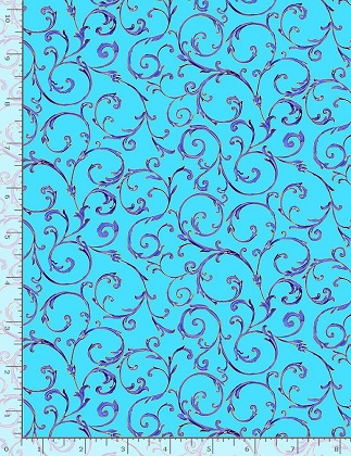 Timeless Treasures - Royal Plume - Metallic Scrolls, Water